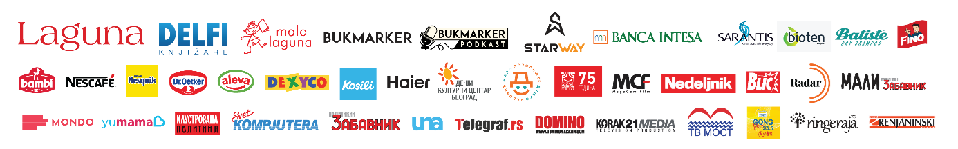 Zahvaljujući prijateljima manifestacije, za svaku kupovinu Laguninih naslova na akciji obezbeđeni su pokloni iznenađenja. Generalni sponzor manifestacije Banka Intesa poklanja uz svaku kupovinu knjiga za decu novi broj časopisa „Jedrenjak“.
