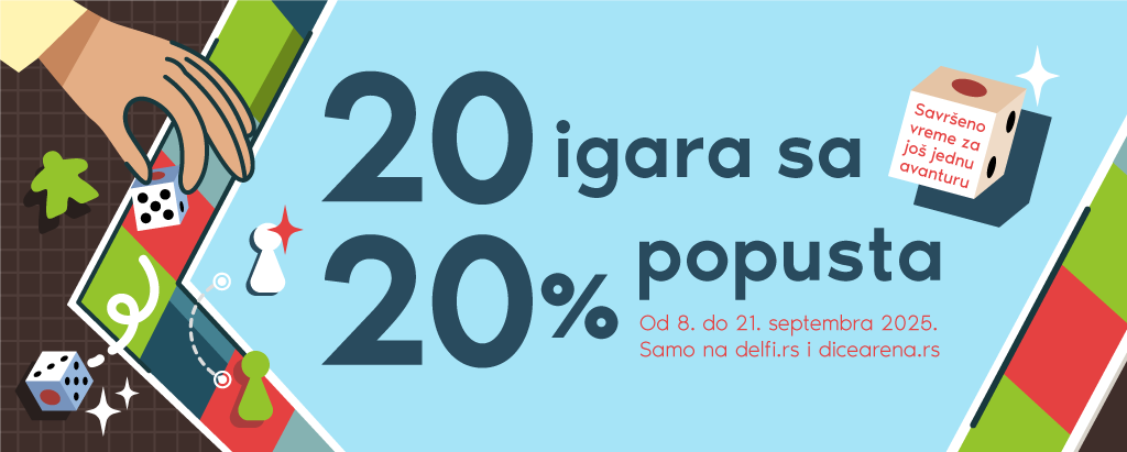 Od 8. do 21. septembra 2025. godine ili do isteka zaliha, sve ljubitelje društvenih igara očekuje uzbudljiva akcija – 20 odabranih igara biće sniženo za 20%. Akcija se odnosi isključivo na onlajn kupovinu putem sajtova delfi.rs i dicearena.rs. Kupovina preko delfi.rs i dicearena.rs donosi dodatnu...