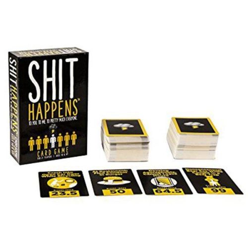 Društvena igra za odrasle Shit Happens je igra sa kartama. Ova ofanzivna igra čija je tema užasni životni događaji koristi 100 situacija iz stvarnog života koje je panel stručnjaka za mentalno zdravlje ocenio od loših do najgorih. Igrači pokušavaju da budu prvi koji će imati 10 karata poređanih od loših do najgorih događaja na osnovu datog Indeksa bede.