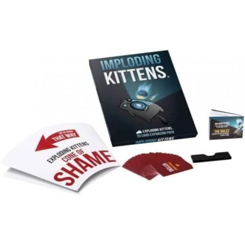Ekspanzija za društvenu igru – Imploding Kittens sadrži 20 novih karata ilustrovanih od strane The Oatmeal i proširuje osnovni špil sa 5 na 6 igrača. Dolazi sa indikatorom okretanja „kupe srama“ ljudske veličine. Nove karte omogućavaju igračima razne obrte u igri. Idealno za igranje vaše omiljene igre – ali u proširenom izdanju i većem društvu.