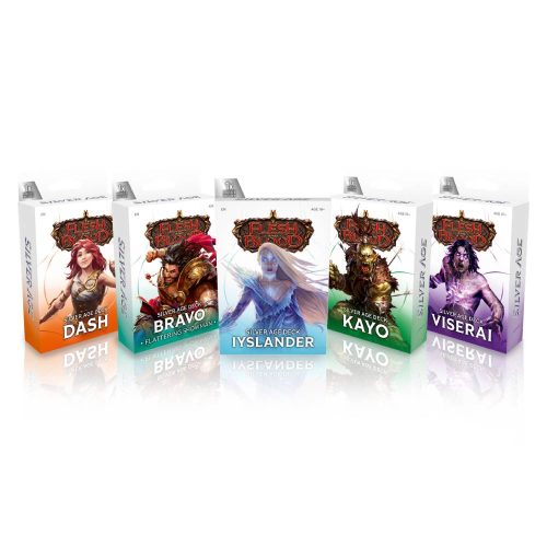 Silver Age špilovi su razvijeni tako da budu spremni za turnir odmah po otvaranju kutije, omogućavajući svakome da ih uzme, takmiči se i pobeđuje. Nabavite ih za igranje kod kuće i za turnire, i doživite uzbudljiv osećaj igrajući Silver Age format. Silver Age špilovi sadrže 55 karata (uključujući oružja, opremu i karte za heroja) i 1 kartu mladog heroja. Svaki špil takođe sadrži 1 Compendium of Rathe booster pakovanje, premium set sa dodacima za Silver Age i Classic Constructed format.